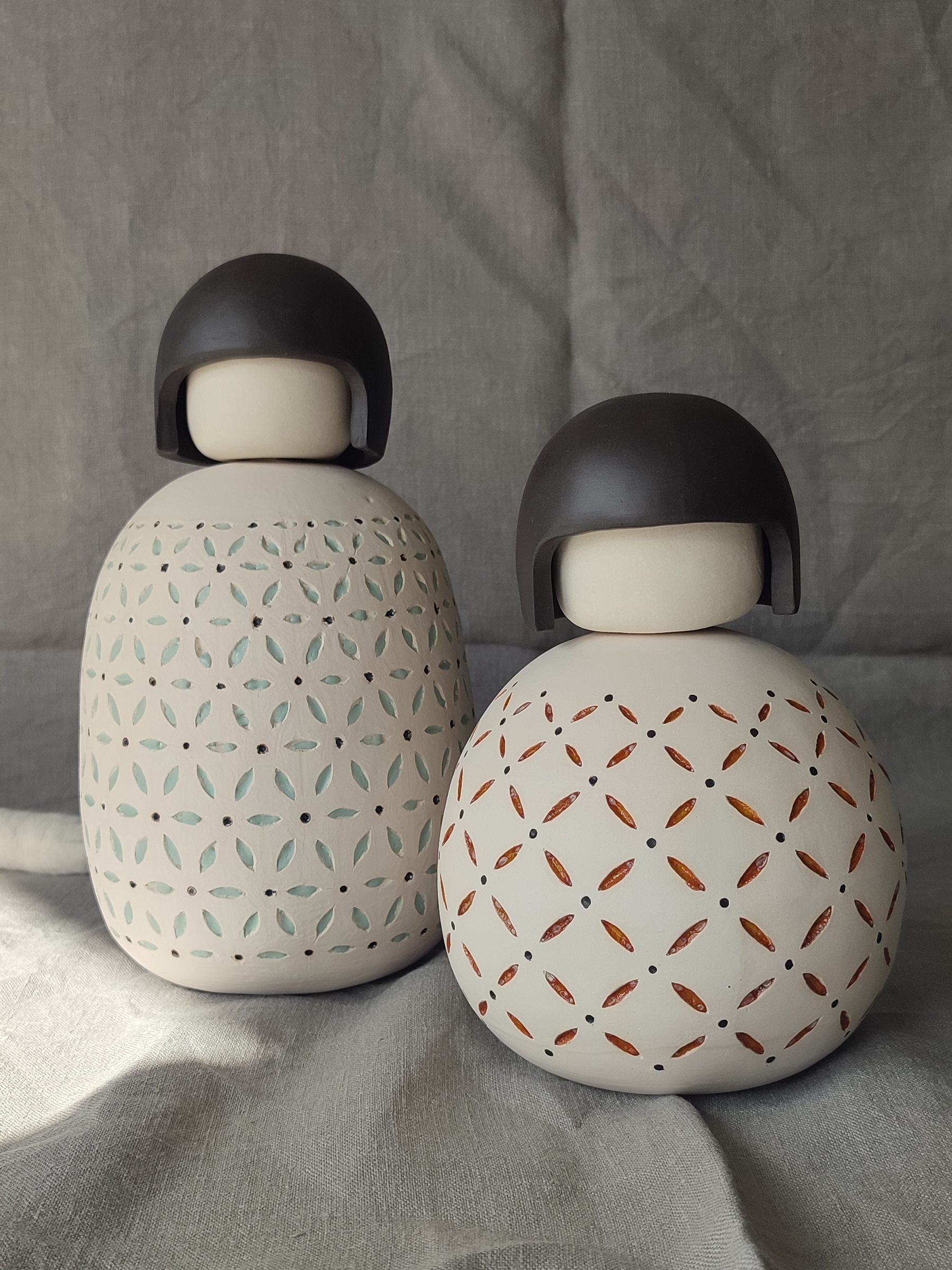 Laleshi – autorskie rzeźby ceramiczne. Tak nazywam lalki, które tworzę. Fascynują mnie proste formy rzeźbiarskie, dające ogromną przestrzeń do eksperymentów z dekoracją i strukturą powierzchni.